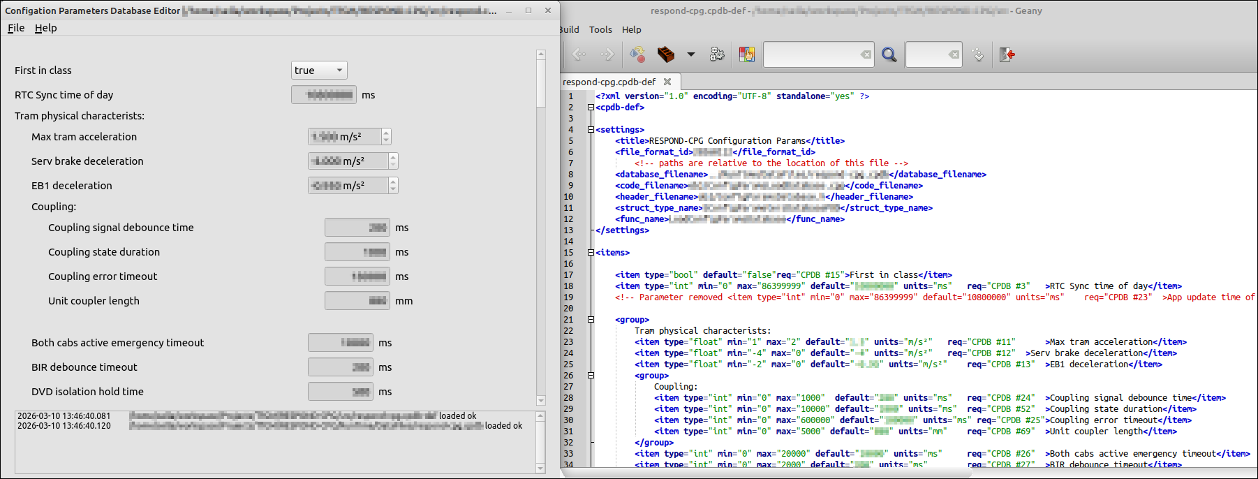 Configuration Parameters Database editor An internal configuration utility designed to manage and export mission-critical parameters. The tool generates a structured database and corresponding checksums, alongside auto-generated source code. This ensures all values are loaded, range-validated, and verified against corruption, maintaining the data integrity requirements for SIL-2 applications.